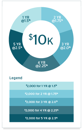 Let’s say you have $10,000 you want to invest in GICs. After searching for the best GIC rates, you choose a lender to invest your money with. From there, the process to ladder your GICs is simple.